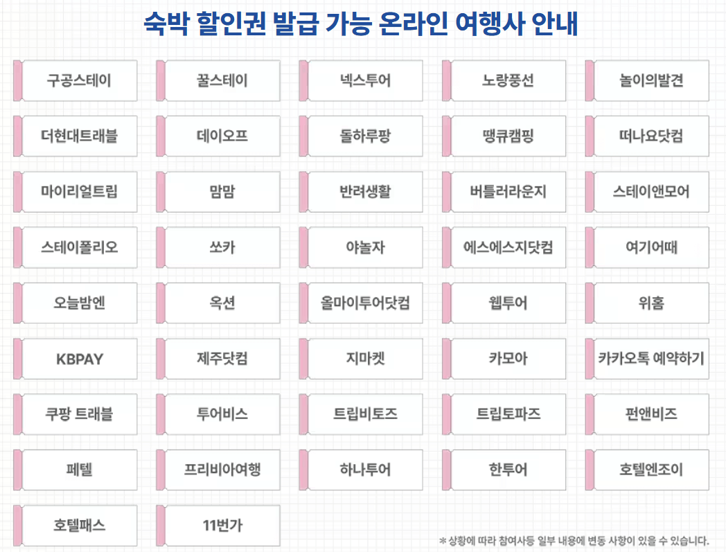 - 사용처: 국내숙박 업소 => 호텔, 콘도, 리조트, 펜션, 모텔 등